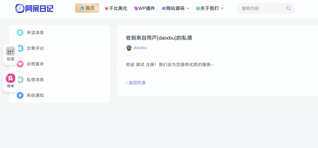 在用户增长场景中,新用户注册完成仅意味着「流量转化的开始」,而非结束。子比主题开发的 **「新用户注册自动发送私信」功能 **,通过系统级触达能力,将传统的「静默注册」升级为「互动式引导」,核心价值体现在:
