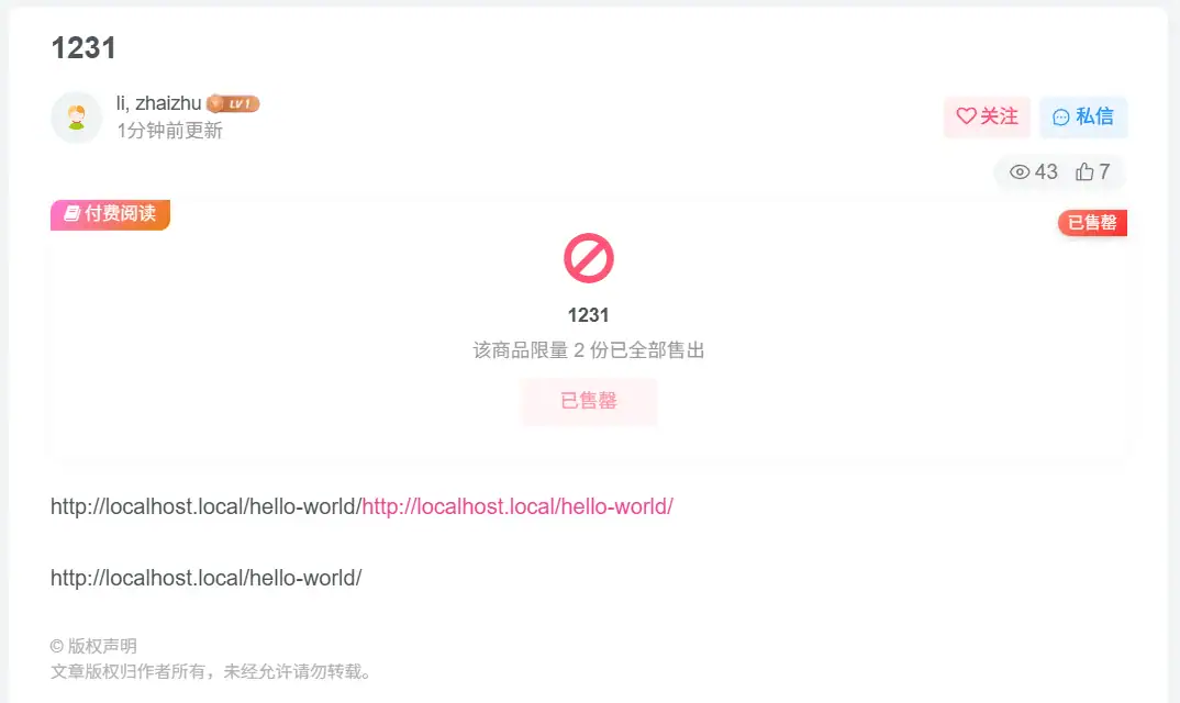 子比主题 – 付费限量销售功能daixbu4天前更新关注私信05314预览图教程 此处内容已隐藏,请评论后刷新页面查看.子比主题 – 付费限量销售功能此内容为免费资源,请登录后查看¥呆币0 登录查看积分不够?点我 快速购买积分 1元 = 100积分免费资源© 版权声明 © 版权声明 All Rights Reserved 免责声明:本站提供用户下载的所有资源均来自网络,版权归作者本人所有,仅限学习和研究目的的,请支持正版! 我们非常重视版权问题,如有侵权请邮件与我们联系处理。敬请谅解!邮件:3487871606@qq.comTHE END子比美化子比美化# 付费# 限量# 销售点赞14 分享QQ空间微博QQ好友复制链接收藏